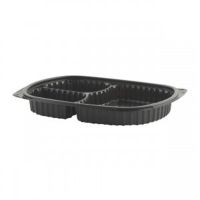 - sun-c6813b-200-32 oz black/clear plast3 comp combo tray w/ lids 200/cscont 3 comp con tapa negroSUN-C6813B32 OZ200/CSBLACK/CLEAR