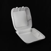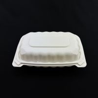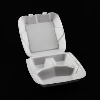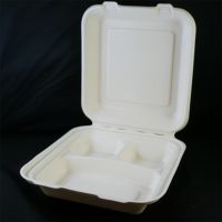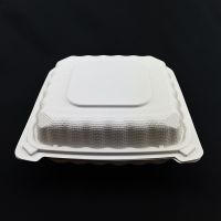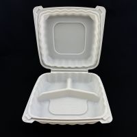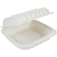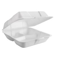 - hfa243-8"x8" white 3-comp bagasse hngd cont 200/cscont de bagazo 8x8 3-com blanPLP-DHL838"X8"200/CSWHITE